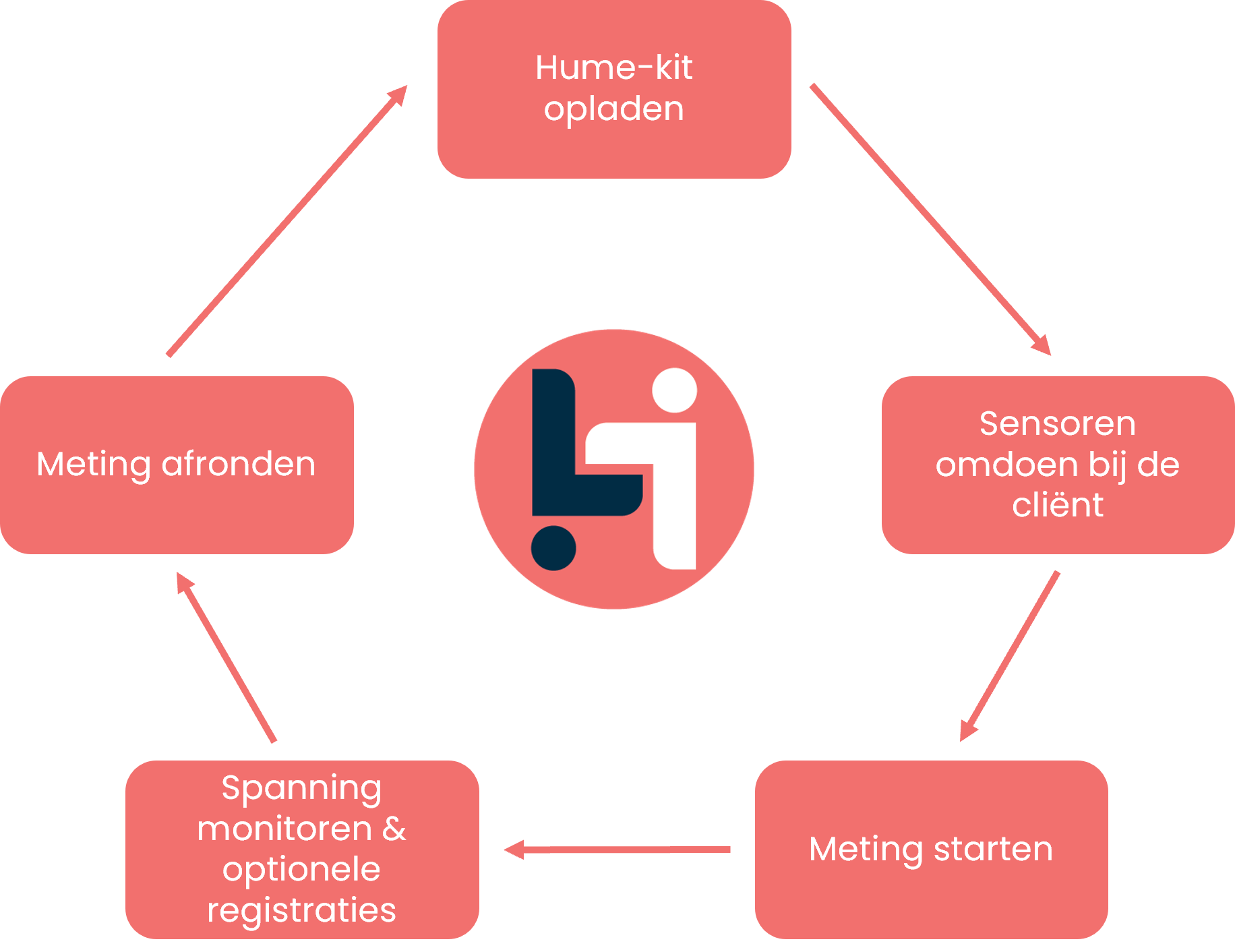 Wanneer je HUME gaat gebruiken, volg je altijd dezelfde stappen. Deze stappen zijn hieronder schematisch weergegeven.